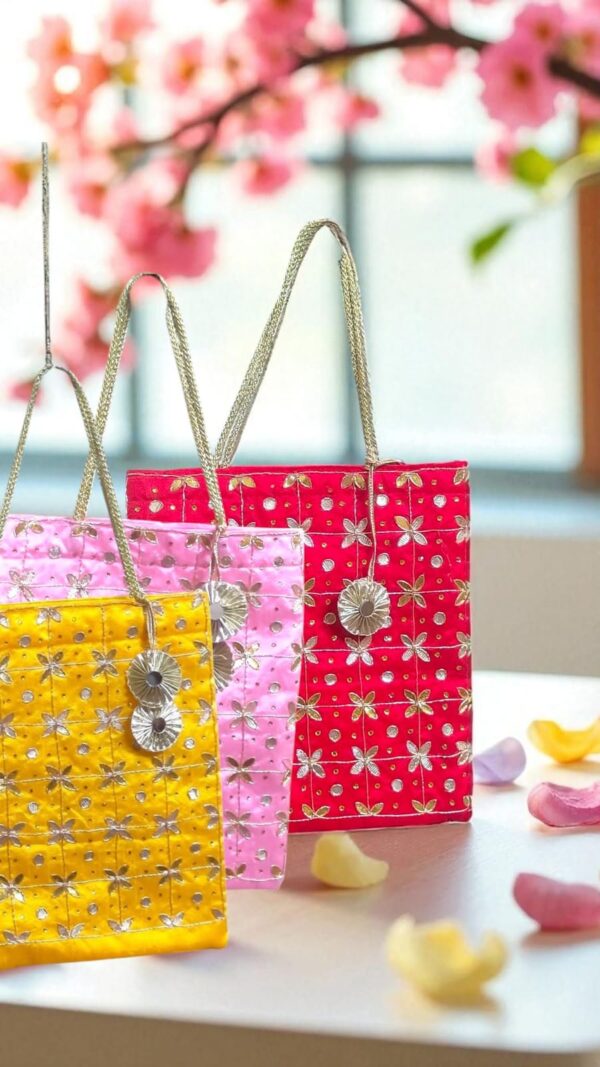 Ideal for weddings, mehendi, sangeet, and festive occasions, this reusable gifting bag is both stylish and practical—something your guests will love to keep and reuse.