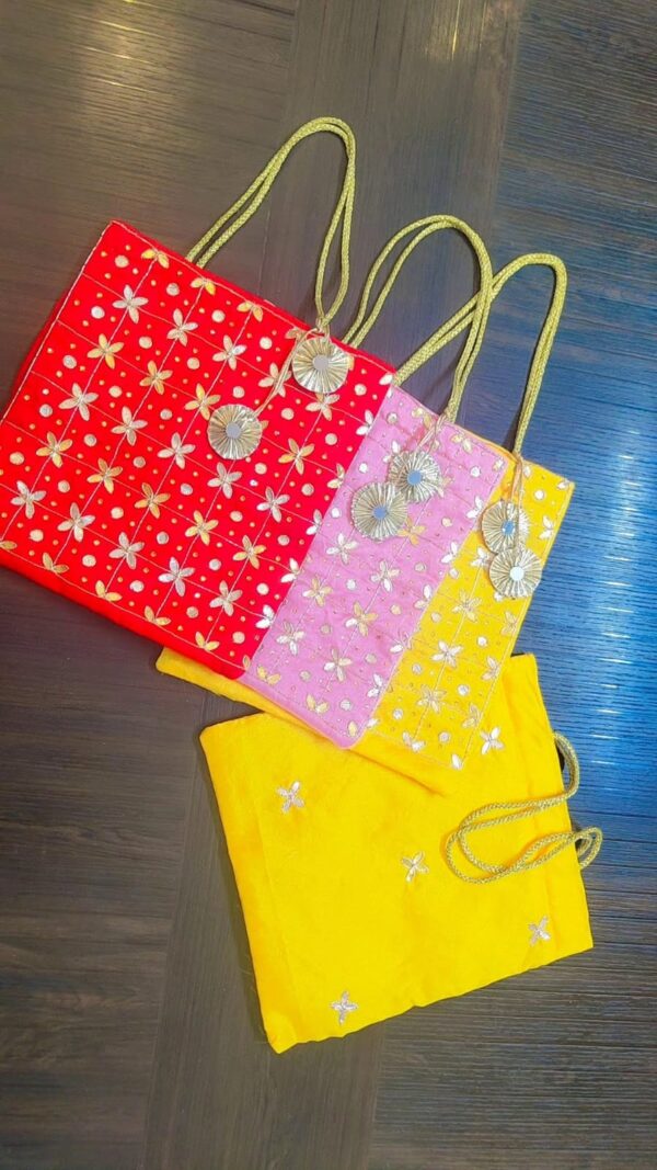 Make your wedding gifting extra special with this elegant gota gifting bag ✨ Designed with rich fabric and beautifully highlighted with traditional gota patti work, this bag adds a festive and luxurious charm to every celebration.