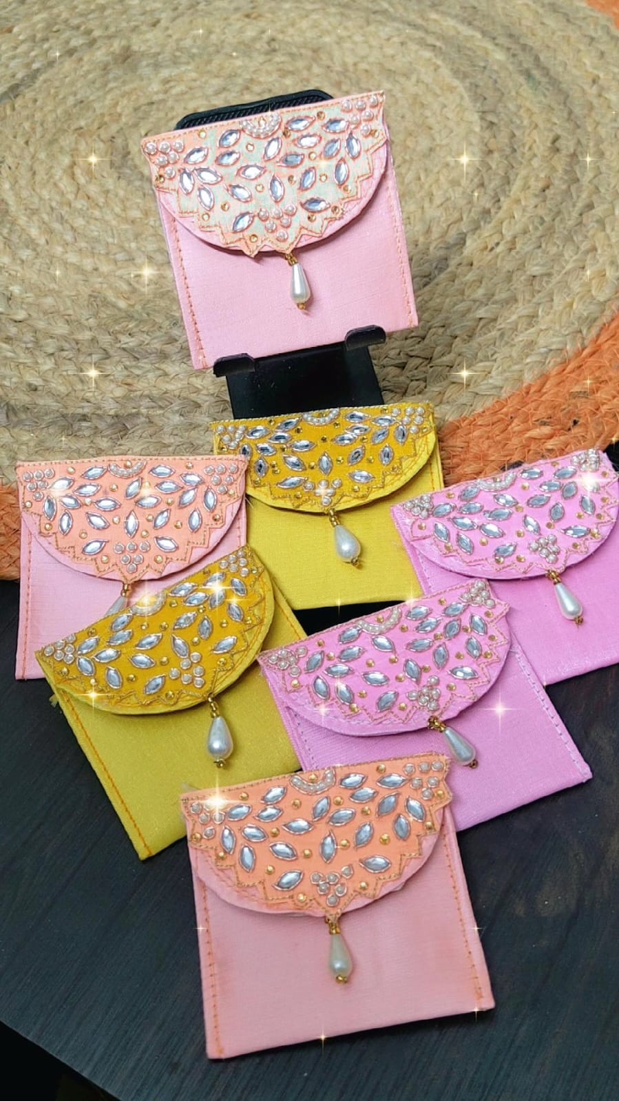 Elevate your gifting with our Kundan Embellished Coin Pouches, exquisitely crafted for festive occasions and special celebrations. Each pouch measures 4 x 4 inches and is adorned with sparkling kundan work, adding a touch of traditional elegance and luxury. Perfect for presenting shagun, coins, or small tokens, these pouches make every gift thoughtful and memorable.
