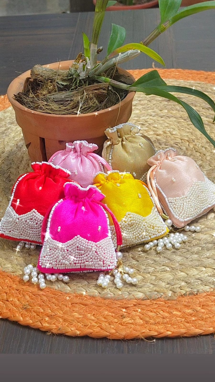 Add a touch of sophistication to your gifting with our Pearl Hand-Embroidered Coin Pouches, exquisitely crafted for weddings, festive occasions, and special celebrations. Each pouch measures 4 x 4 inches and features elegant hand-embroidered pearl detailing, creating a luxurious and traditional appeal. Perfect for gifting coins, shagun, or small tokens, these pouches make every gesture thoughtful and memorable.