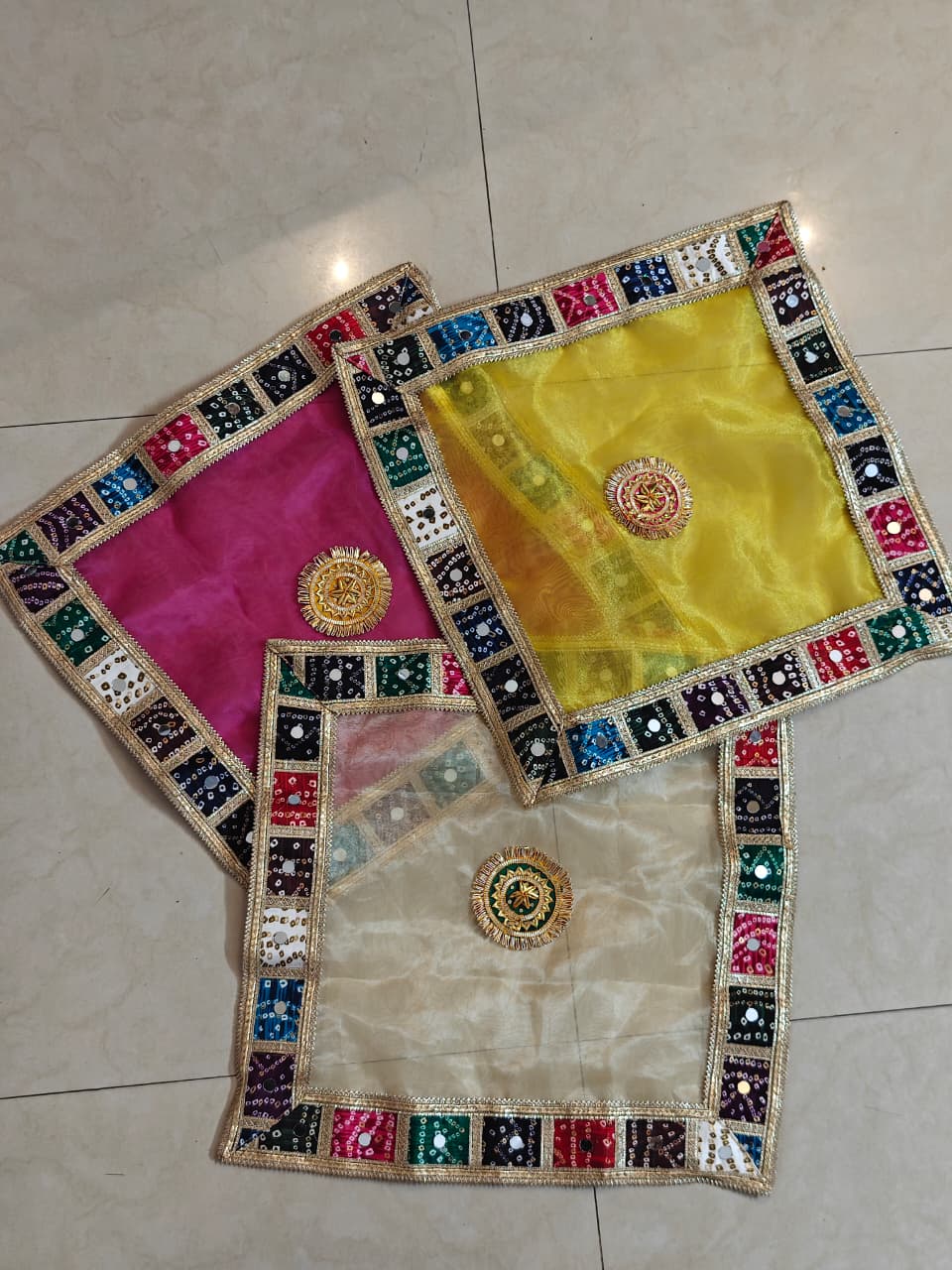 Bring grace and tradition to your rituals with this beautifully crafted 18×18 inches Puja Aasan and Thali Cover Set. Designed to enhance the sanctity of every occasion, this set is perfect for daily puja, festive rituals, and wedding ceremonies.