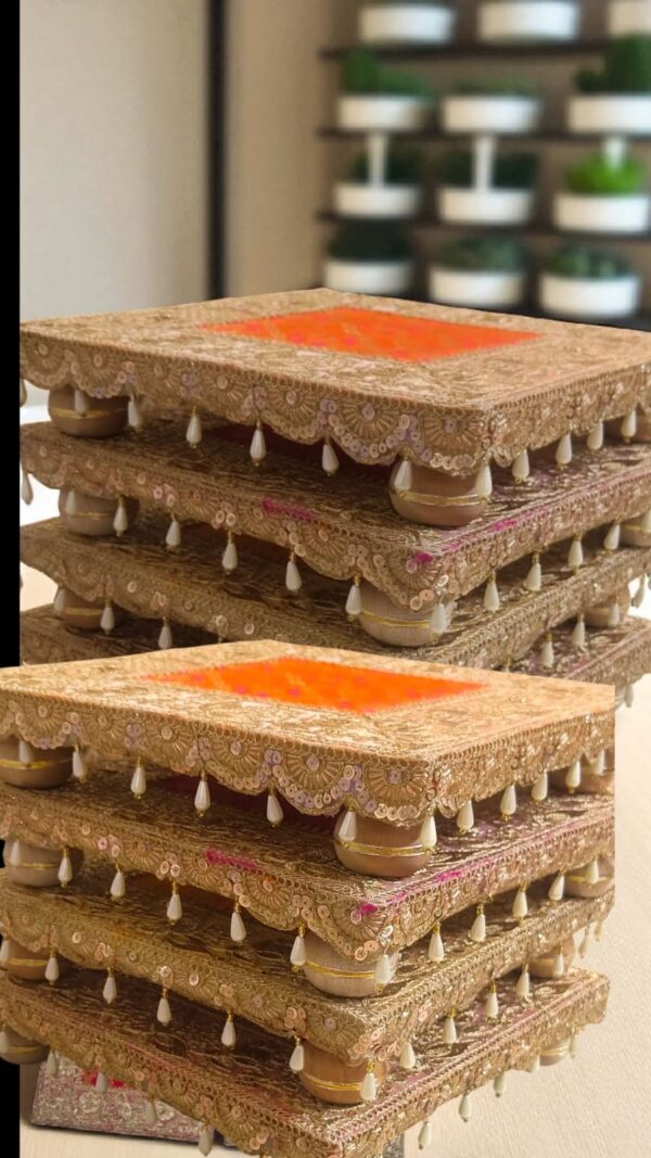 Reusable and easy to maintain, this chawki is not just functional but also adds a graceful aesthetic to your wedding arrangements. A timeless essential for weddings, festive poojas, and auspicious occasions 🌼